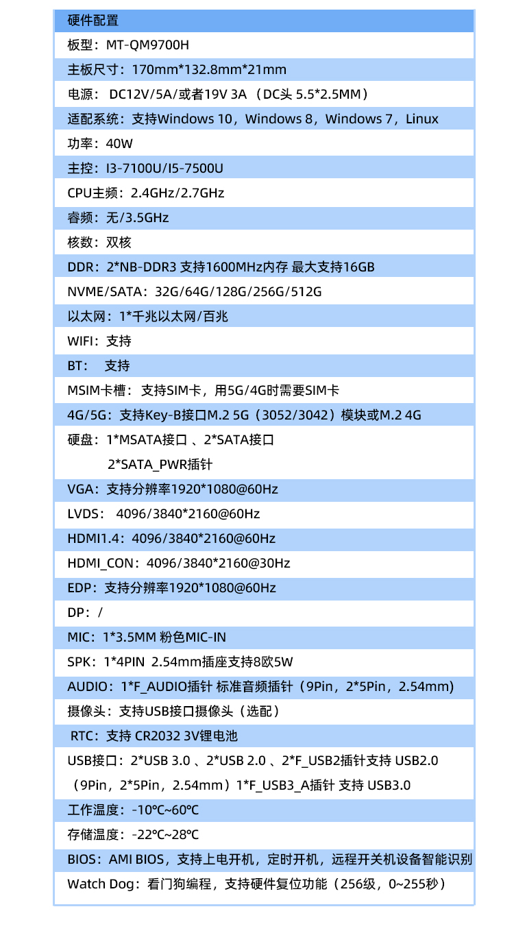 MT-QM9700H-UA主板支持搭載英特爾賽揚(yáng)系列,I3/I5/I7處理器。MT-QM9700H-UA屬于高性能X86架構(gòu)產(chǎn)品,基于先進(jìn)制程,并支持多種操作系統(tǒng)!