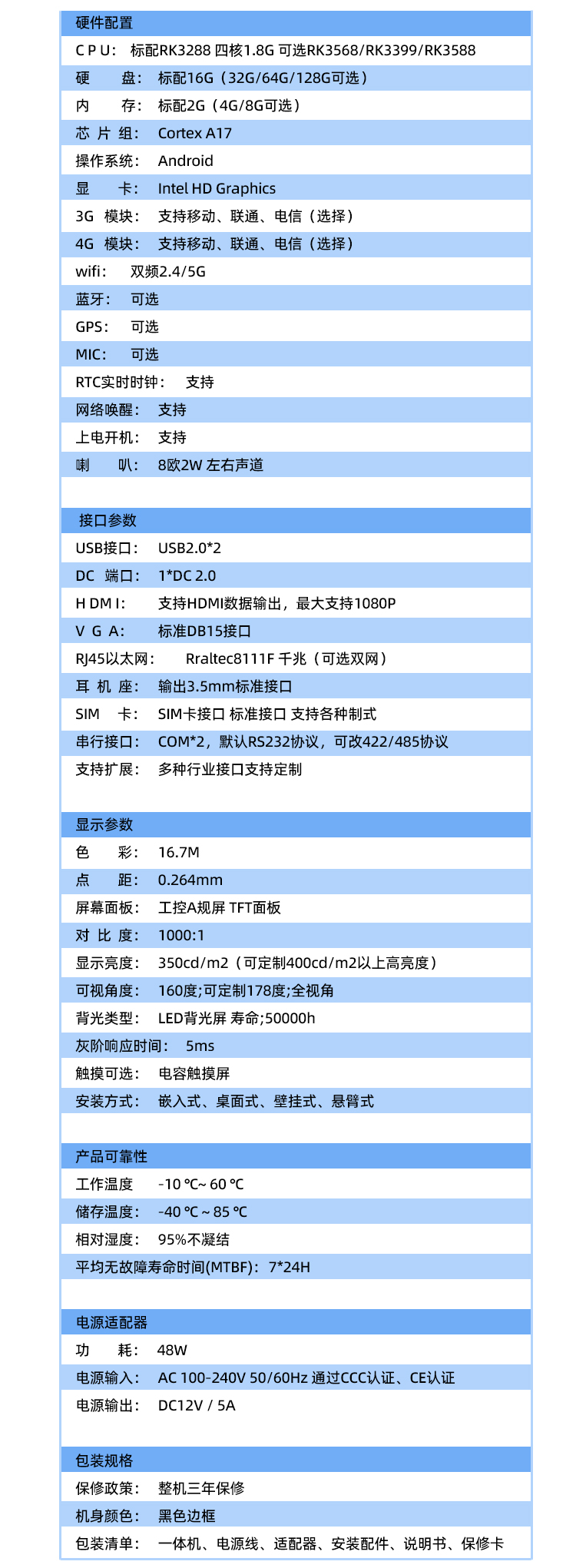 | CPU | 標(biāo)配:RK3288 四核1.8G 可選RK3568/RK3399/RK3588 |